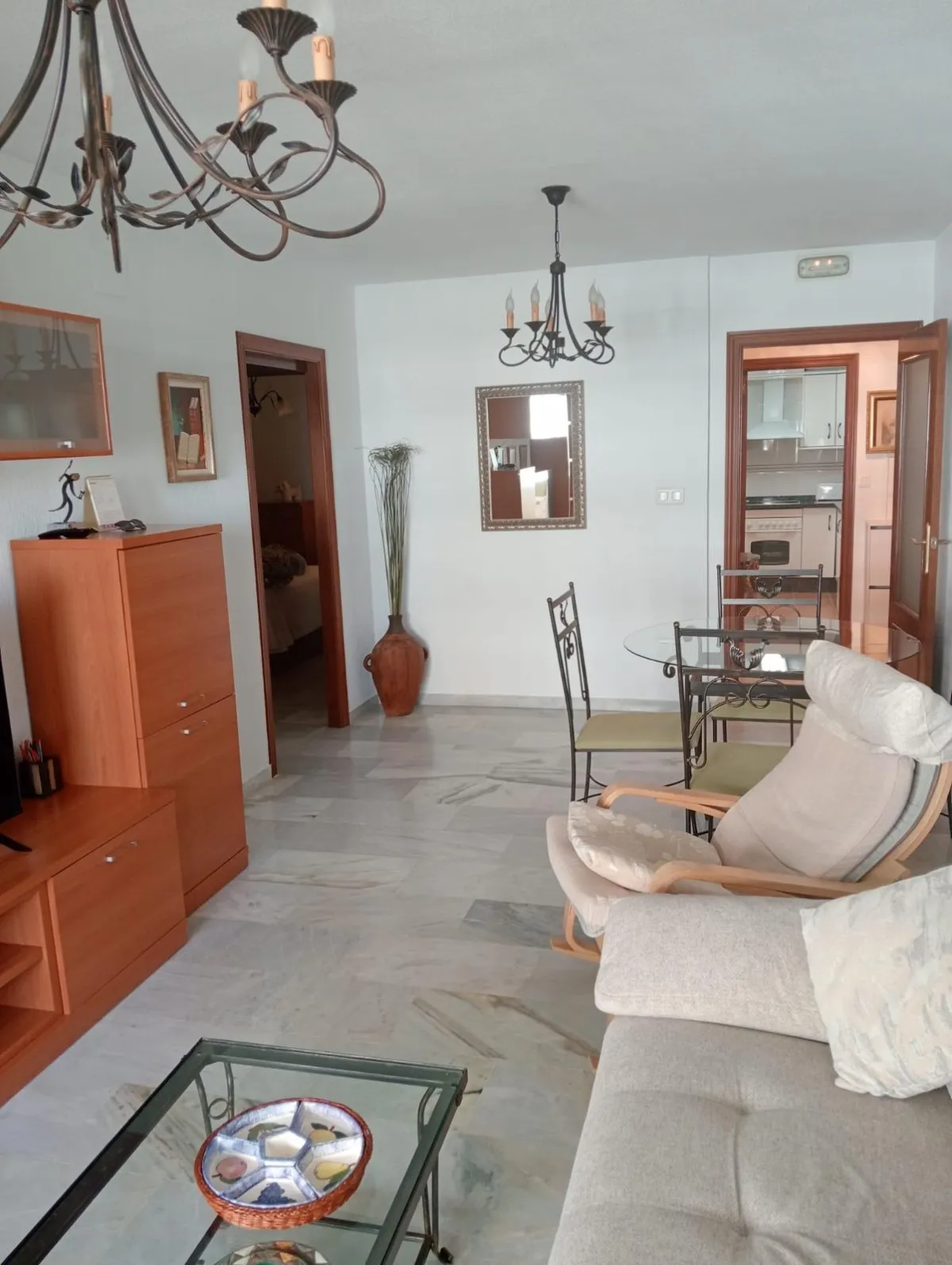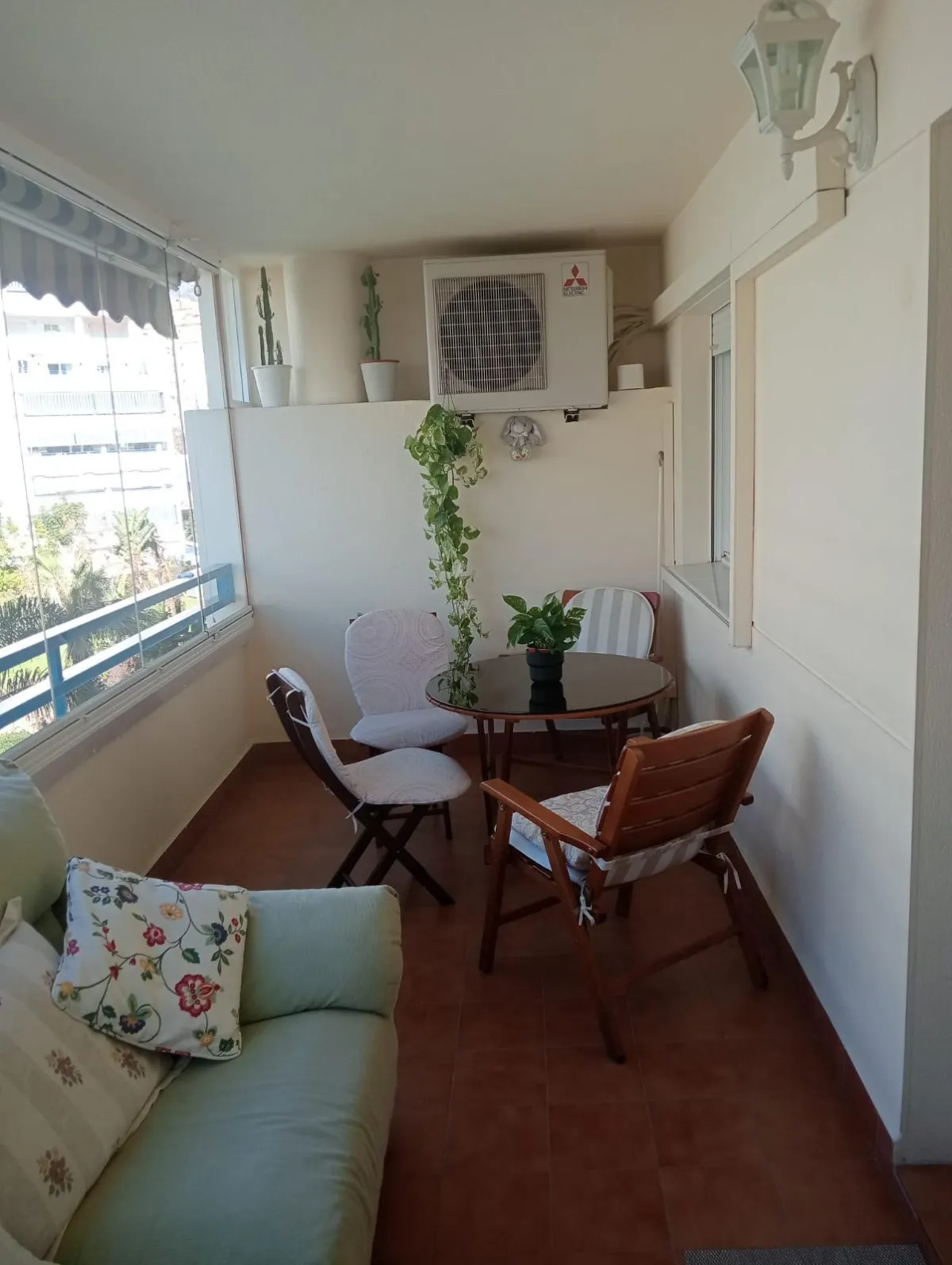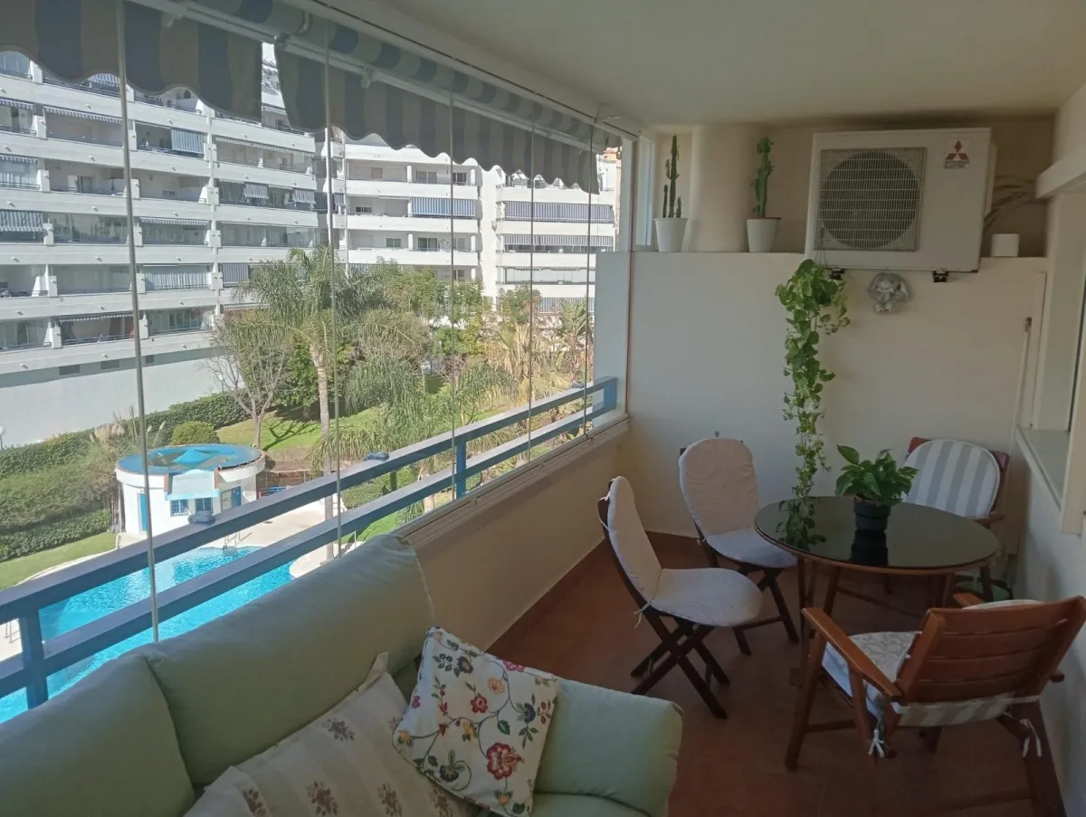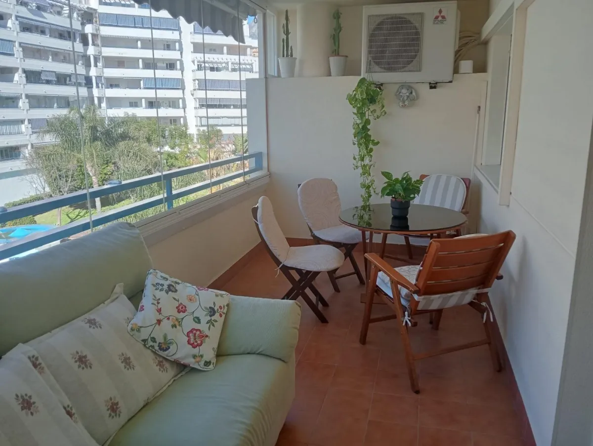 La terraza, con cortina de cristal, se convierte en el lugar perfecto para relajarte mientras disfrutas de las vistas. Además, el aire acondicionado y los armarios empotrados aportan funcionalidad y confort. Este piso semi amueblado está en excelente estado y es ideal tanto para vivir como para invertir.