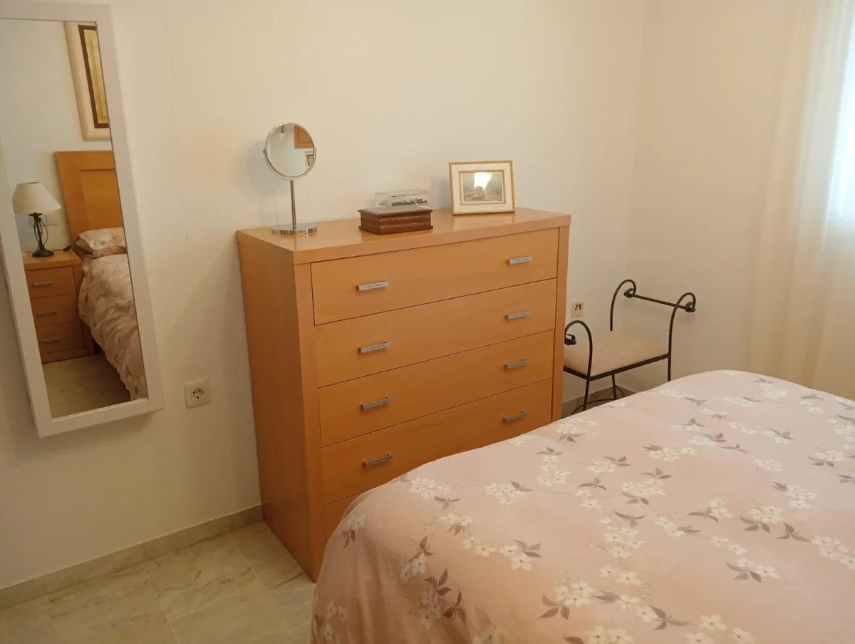 Descubre este impresionante piso en la cuarta planta, donde la luz natural y las vistas a la piscina y al mar son protagonistas, ojo, que también tiene vistas a la montaña. Con 90 m² de espacio bien distribuido, este hogar cuenta con dos acogedores dormitorios con armarios empotrados en ambos, un baño completo con bañera y otro baño completo con ducha, ideal para disfrutar de la comodidad en tu día a día.